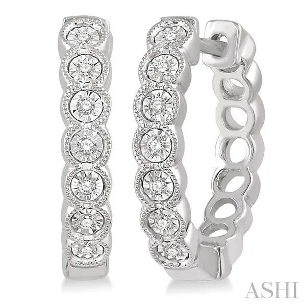 1/10 Ctw Lattice Round Cut Diamond Hoop Earrings in 10K White Gold Image 2 Adler's Diamonds Saint Louis, MO
