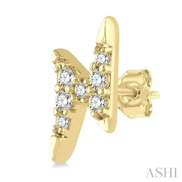1/10 Ctw Lightning Bolt Round Cut Diamond Petite Earring in 10K Yellow Gold Image 4 Adler's Diamonds Saint Louis, MO