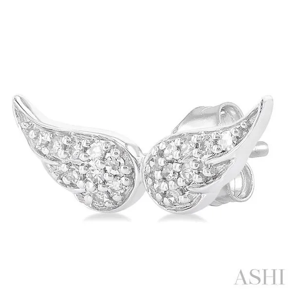 1/10 Ctw Petite Angel Wings Round Cut Diamond Fashion Stud Earring in 10K White Gold Image 2 Adler's Diamonds Saint Louis, MO
