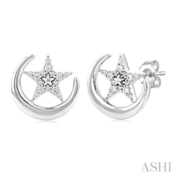 1/10 Ctw Petite Crescent Moon and Star Round Cut Diamond Fashion Stud Earring in 10K White Gold Image 2 Adler's Diamonds Saint Louis, MO