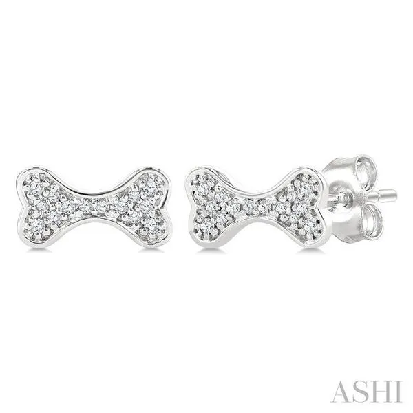 3. 1/10 Ctw Petite Dog Bone Round Cut Diamond Fashion Stud Earring in 10K White Gold