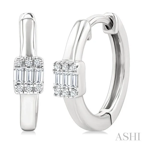 1/10 Ctw Petite Rectangular Center Fusion Baguette and Round Cut Diamond Fashion Huggies in 10K White Gold Adler's Diamonds Saint Louis, MO