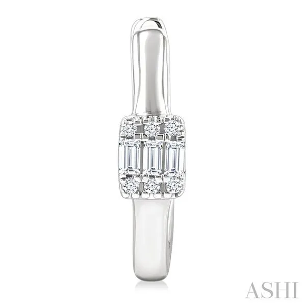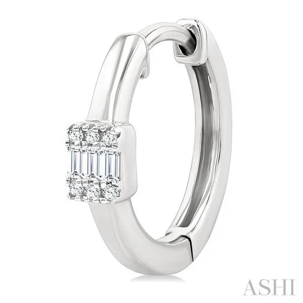 1/10 Ctw Petite Rectangular Center Fusion Baguette and Round Cut Diamond Fashion Huggies in 10K White Gold Image 3 Adler's Diamonds Saint Louis, MO