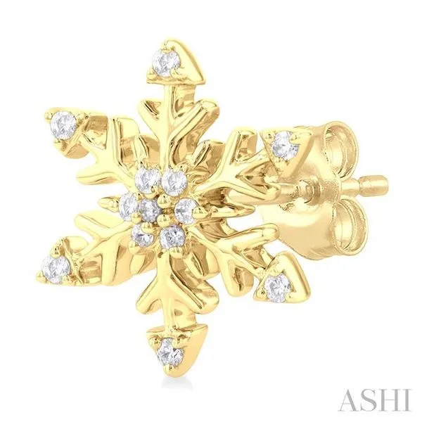 1/10 Ctw Petite Snowflake Round Cut Diamond Halo Fashion Stud Earring in 10K Yellow Gold Image 4 Adler's Diamonds Saint Louis, MO