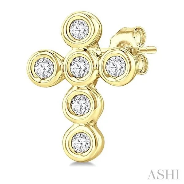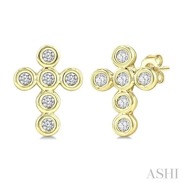 1/10 Ctw Round Cut Diamond Bezel Set Cross Petite Earrings in 10K Yellow Gold Image 3 Adler's Diamonds Saint Louis, MO