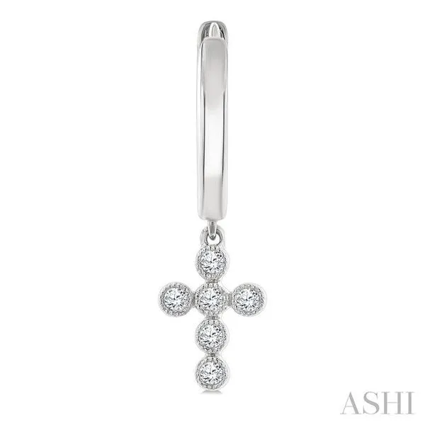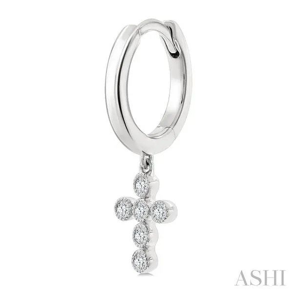 1/10 Ctw Round Cut Diamond Cross Petite Huggie Earrings in 10K White Gold Image 3 Adler's Diamonds Saint Louis, MO