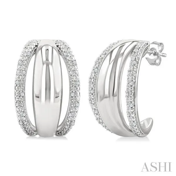 1/10 Ctw Split Dome Shape Round Cut Diamond Bold Half Hoop Earring in Sterling Silver Adler's Diamonds Saint Louis, MO