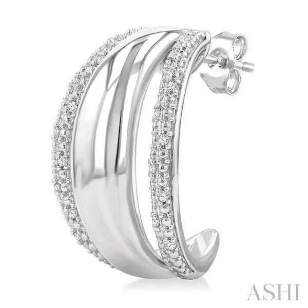 1/10 Ctw Split Dome Shape Round Cut Diamond Bold Half Hoop Earring in Sterling Silver Image 2 Adler's Diamonds Saint Louis, MO