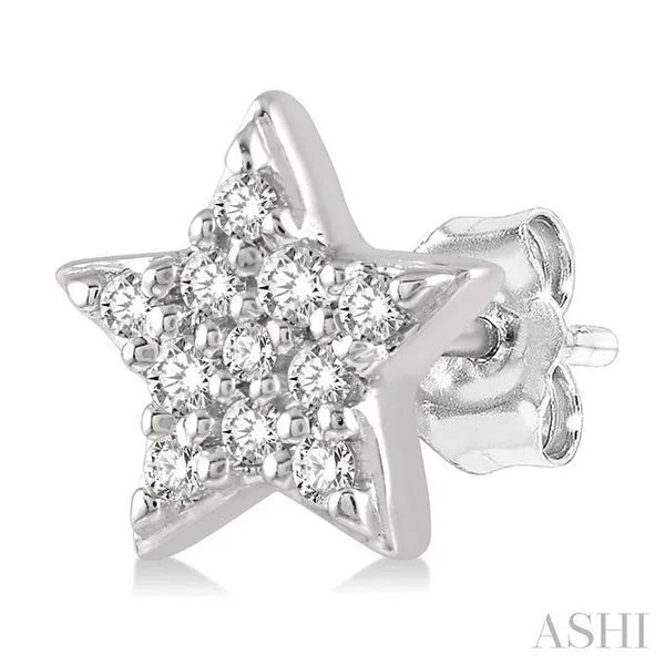 3. 1/10 Ctw Star & Crescent Mix Round Cut Diamond Petite Fashion Earring in 10K White Gold