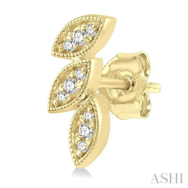 1/10 Ctw Tri Leaf Round Cut Diamond Petite Earring in 10K Yellow Gold Image 2 Adler's Diamonds Saint Louis, MO
