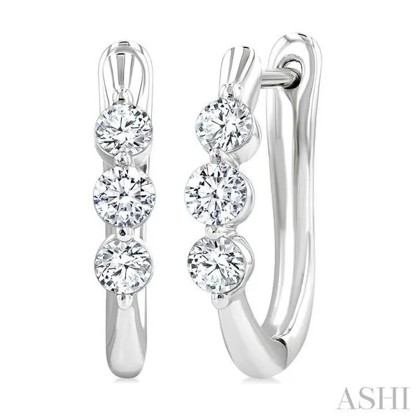 1/2 Ctw 3-Stone Round Cut Diamond Fashion Hoop Earring in 14K White Gold Image 3 Adler's Diamonds Saint Louis, MO