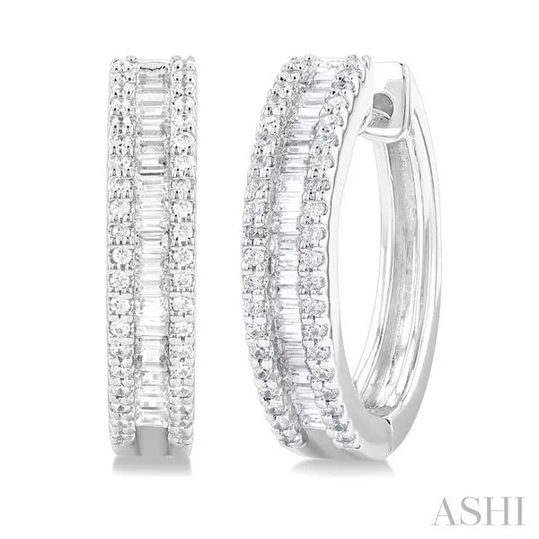 1/2 Ctw Baguette and Round Cut Diamond Fashion Hoop Earring in 14K White Gold Image 2 Adler's Diamonds Saint Louis, MO