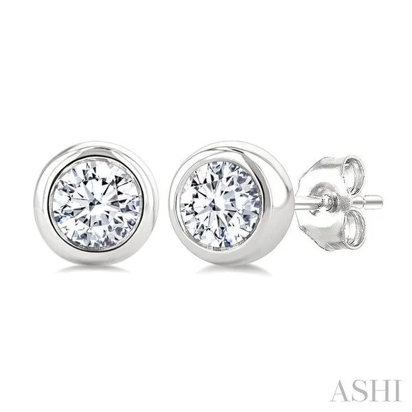 1/2 Ctw Bezel Set Round Cut Diamond Stud Earrings in 14K White Gold Image 2 Adler's Diamonds Saint Louis, MO