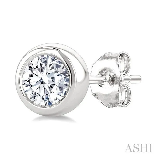 1/2 Ctw Bezel Set Round Cut Diamond Stud Earrings in 14K White Gold Image 3 Adler's Diamonds Saint Louis, MO