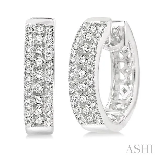 1/2 Ctw Channel Set Round Cut Diamond Hoop Earring in 14K White Gold Image 2 Adler's Diamonds Saint Louis, MO