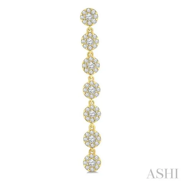 1/2 Ctw Cluster Round Cut Diamond Fashion Long Earrings in 14K Yellow Gold Image 2 Adler's Diamonds Saint Louis, MO