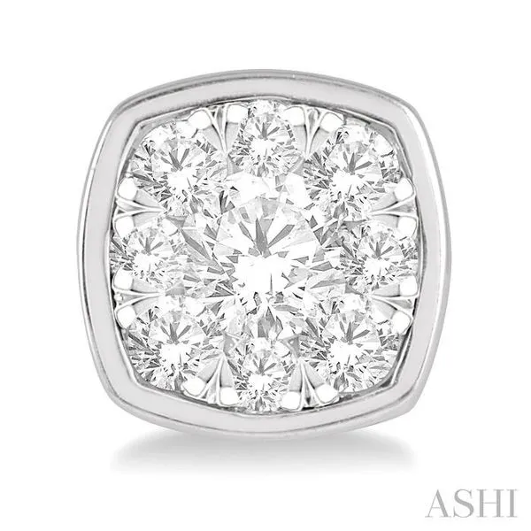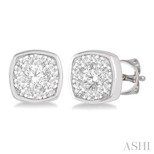 1/2 Ctw Cushion Shape Round Cut Diamond Lovebright Bezel Stud Earring in 14K White Gold Image 2 Adler's Diamonds Saint Louis, MO