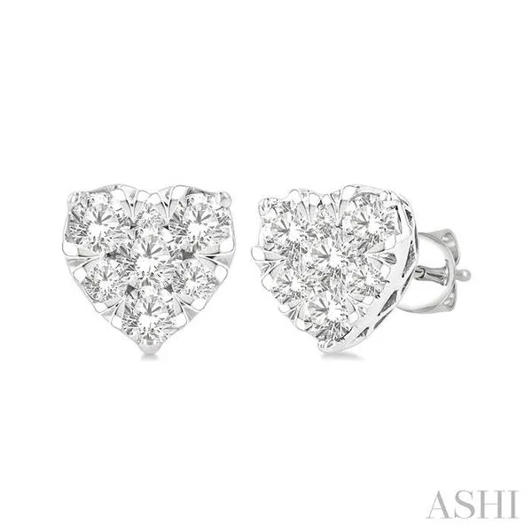 1/2 Ctw Heart Shape Lovebright Round Cut Diamond Stud Earring in 14K White Gold