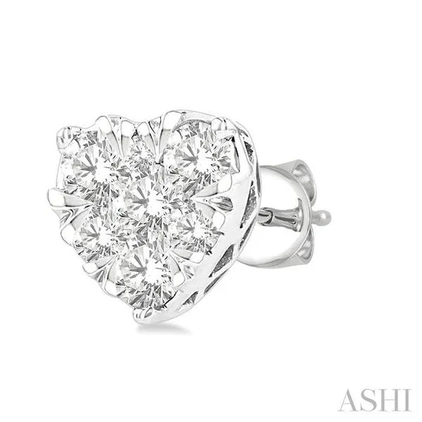 1/2 Ctw Heart Shape Lovebright Round Cut Diamond Stud Earring in 14K White Gold Image 3 Adler's Diamonds Saint Louis, MO