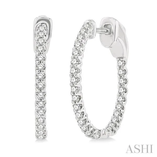 1/2 Ctw Inside-Out Round Cut Diamond Hoop Earrings in 14K White Gold Image 2 Adler's Diamonds Saint Louis, MO
