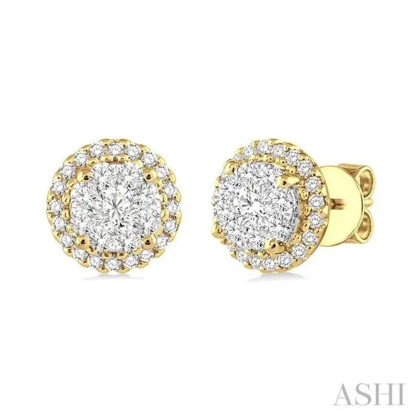 1/2 Ctw Lovebright Round Cut Diamond Earrings in 14K Yellow and White Gold Image 2 Adler's Diamonds Saint Louis, MO
