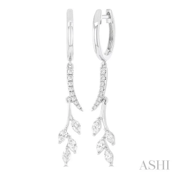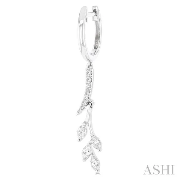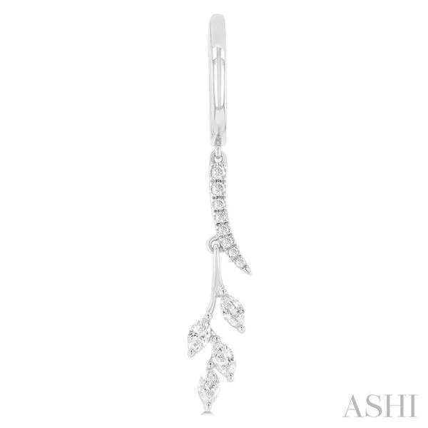 1/2 Ctw Marquise and Round Cut Diamond Leaf Dangler Hoop Earrings in 14K White Gold Image 2 Adler's Diamonds Saint Louis, MO