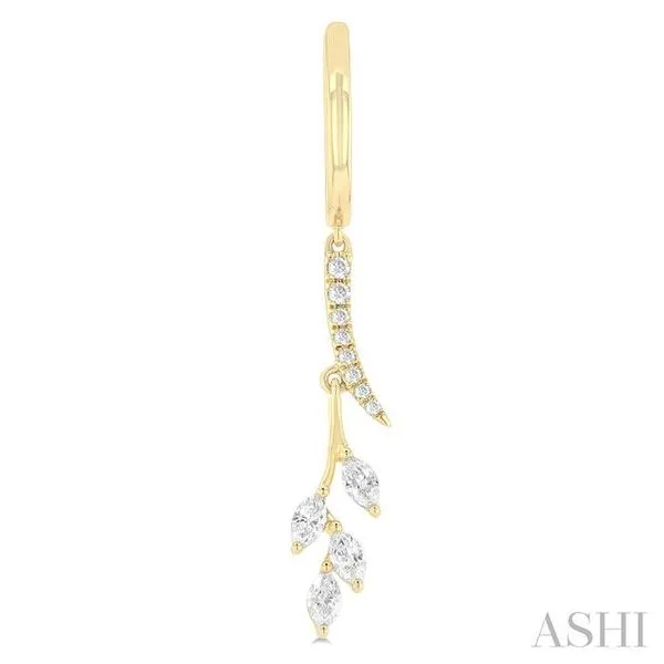 1/2 Ctw Marquise and Round Cut Diamond Leaf Dangler Hoop Earrings in 14K Yellow Gold Image 2 Adler's Diamonds Saint Louis, MO