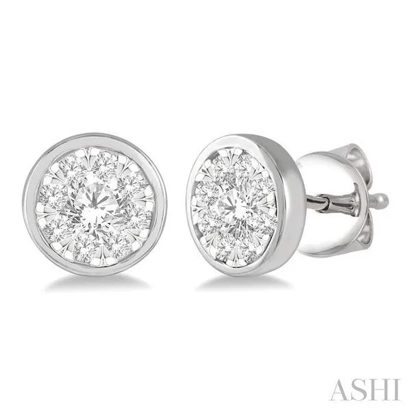 1/2 Ctw Medallion Lovebright Round Cut Diamond Bezel Stud Earring in 14K White Gold Image 4 Adler's Diamonds Saint Louis, MO