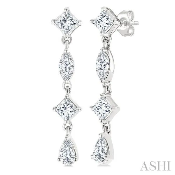 3. 1/2 Ctw Mixed Cut Diamond Fashion Long Earrings in 14K White Gold