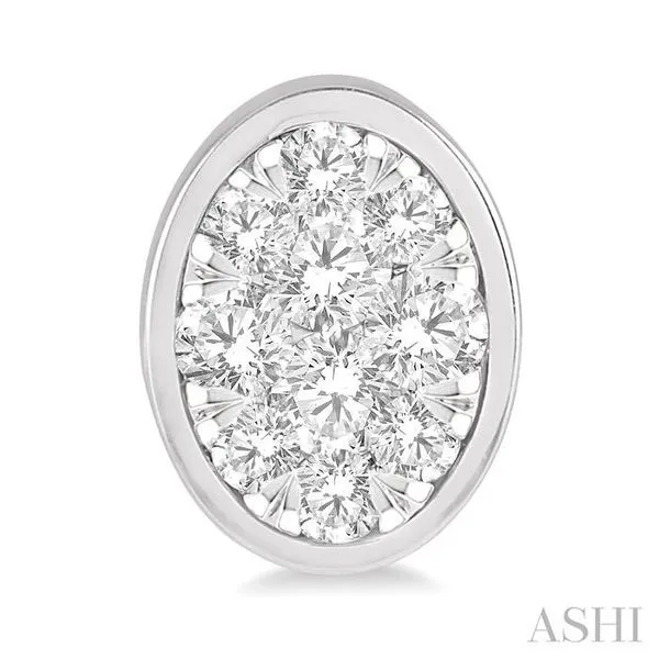 1/2 Ctw Oval Shape Lovebright Round Cut Diamond Bezel Stud Earring in 14K White Gold Image 3 Adler's Diamonds Saint Louis, MO