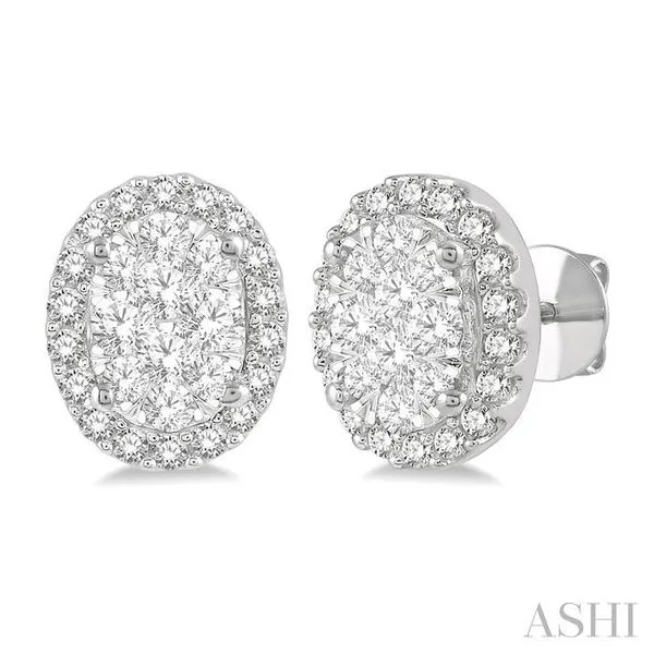 1/2 Ctw Oval Shape Lovebright Round Cut Diamond Stud Earrings in 14K White Gold Image 2 Adler's Diamonds Saint Louis, MO
