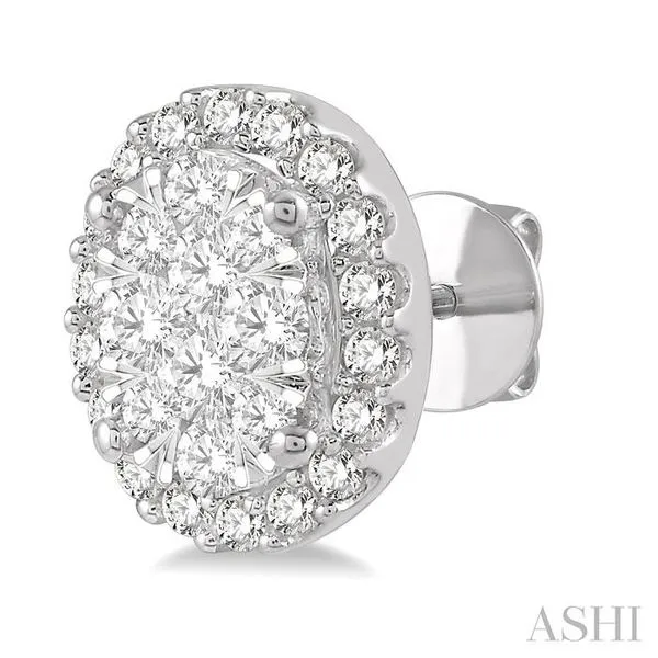 1/2 Ctw Oval Shape Lovebright Round Cut Diamond Stud Earrings in 14K White Gold Image 3 Adler's Diamonds Saint Louis, MO