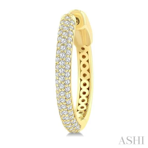 1/2 Ctw Pave Set Round Cut Diamond Fashion Hoop Earrings in 14K Yellow Gold Image 2 Adler's Diamonds Saint Louis, MO