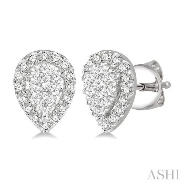 1/2 Ctw Pear Shape Lovebright Diamond Stud Earrings in 14K White Gold