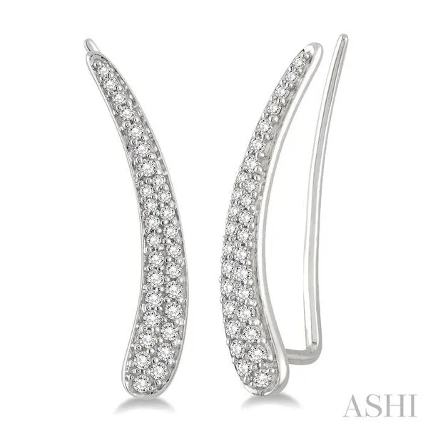 1/2 Ctw Round Cut Diamond Bar Climbers Earrings in 14K White Gold Image 2 Adler's Diamonds Saint Louis, MO