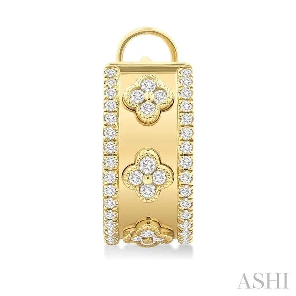 1/2 Ctw Round Cut Diamond Clover Fashion Hoop Earrings in 14K Yellow Gold Image 3 Adler's Diamonds Saint Louis, MO