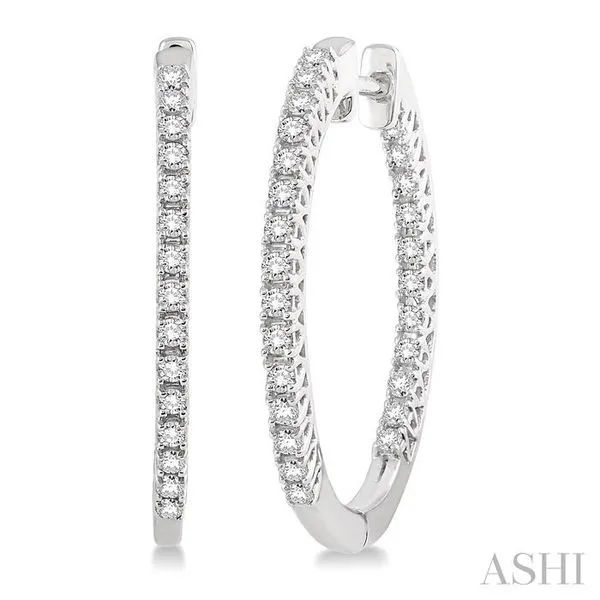 1/2 Ctw Round cut Diamond Hoop Earrings in 14K White Gold Image 3 Adler's Diamonds Saint Louis, MO