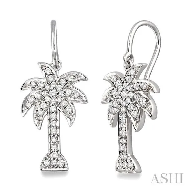1/2 Ctw Round Cut Diamond Palm Tree Earrings in 14K White Gold Image 2 Adler's Diamonds Saint Louis, MO