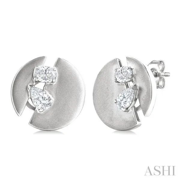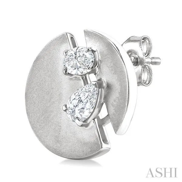 1/2 Ctw Split Circle Oval and Pear Cut Diamond Fashion Stud Earrings in 14K White Gold Adler's Diamonds Saint Louis, MO