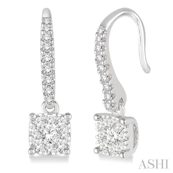 1/2 Ctw Square Shape Diamond Lovebright Earrings in 14K White Gold Image 2 Adler's Diamonds Saint Louis, MO