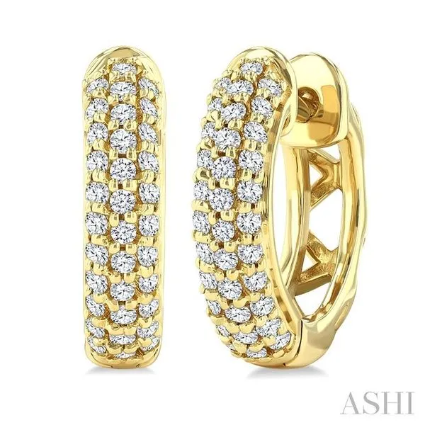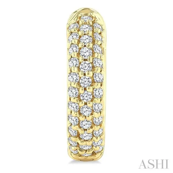 1/2 Ctw Triple Row Round Cut Diamond Fashion Huggies in 14K Yellow Gold Image 2 Adler's Diamonds Saint Louis, MO