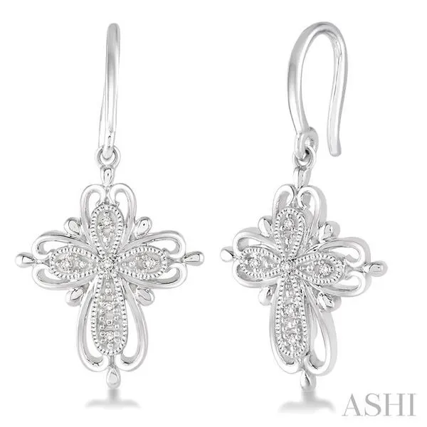 1/20 Ctw Round Cut Diamond Cross Earrings in Sterling Silver Image 2 Adler's Diamonds Saint Louis, MO
