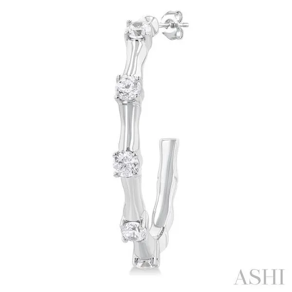 1/3 Ctw Bamboo Shoot Inspired Round Cut Diamond Fashion Half Hoop Earring in 14K White Gold Image 2 Adler's Diamonds Saint Louis, MO