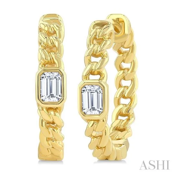 1/3 Ctw Bezel Set Emerald Cut Diamond Curb Link Fashion Hoop Earring in 14K Yellow Gold Image 2 Adler's Diamonds Saint Louis, MO