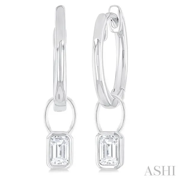 1/3 Ctw Bezel Set Emerald Cut Diamond Huggie Earrings in 10K White Gold Adler's Diamonds Saint Louis, MO