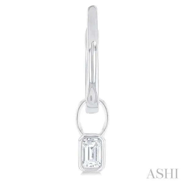 1/3 Ctw Bezel Set Emerald Cut Diamond Huggie Earrings in 10K White Gold Image 3 Adler's Diamonds Saint Louis, MO