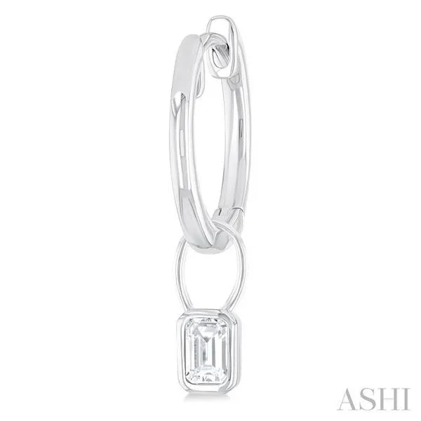 1/3 Ctw Bezel Set Emerald Cut Diamond Huggie Earrings in 10K White Gold Image 2 Adler's Diamonds Saint Louis, MO