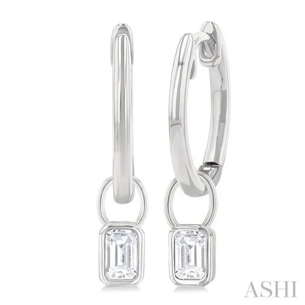 1/3 Ctw Bezel Set Emerald Cut Diamond Huggie Earrings in 14K White Gold Image 2 Adler's Diamonds Saint Louis, MO