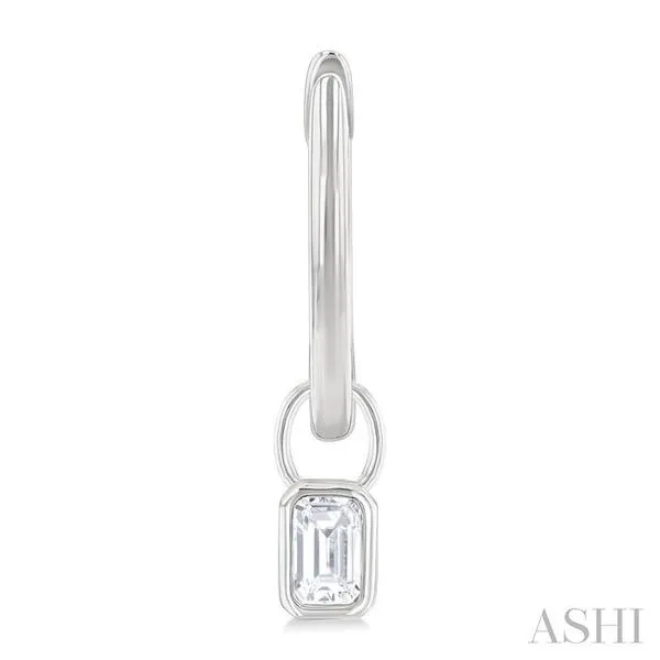1/3 Ctw Bezel Set Emerald Cut Diamond Huggie Earrings in 14K White Gold Image 3 Adler's Diamonds Saint Louis, MO