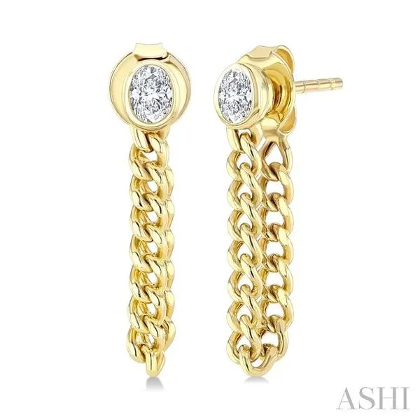 1/3 Ctw Bezel Set Oval Cut Diamond Curb Link Chain Dangler Fashion Earring in 14K Yellow Gold Image 2 Adler's Diamonds Saint Louis, MO